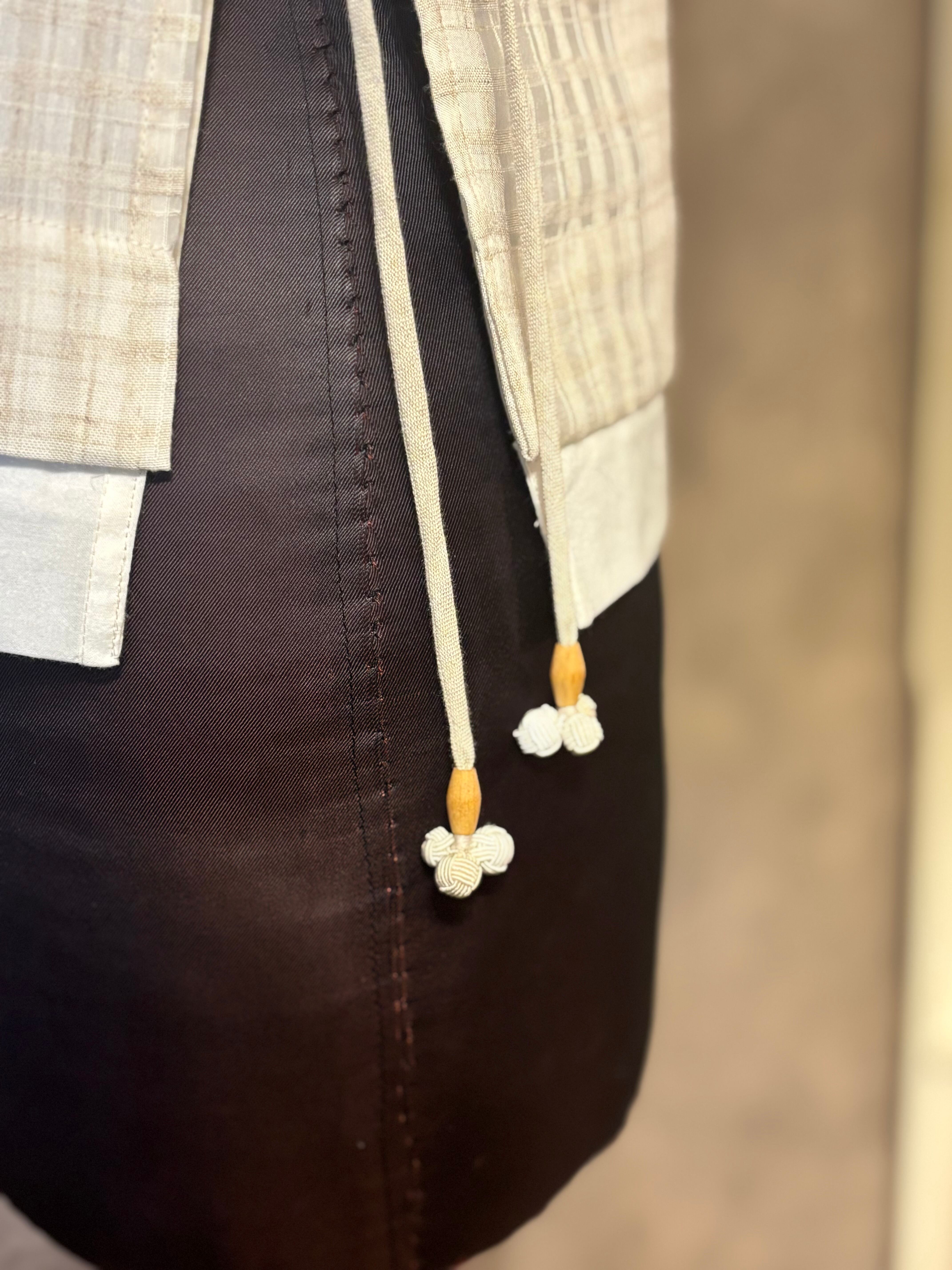 紐の先端にはあわじ玉のボールと木製のビーズでタッセルにし